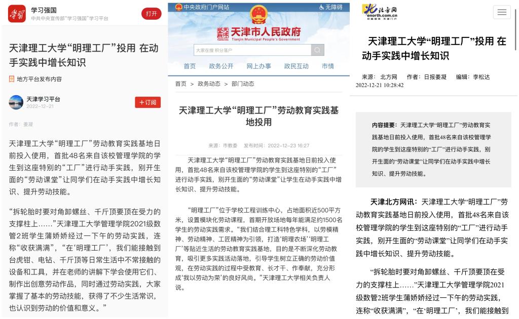 一是加强一流课程建设,构建高质量课程体系。学校开展“校级——市级——国家级”进阶式培育体系,着力打造一批具有高阶性、创新性和挑战性的“金课”。目前,我校获批国家级一流本科课程11门、市级一流本科课程46门。二是开展创新创业课程建设,构建协同育人新格局。学校不断拓展实践平台,筹建双创学院,依托天开高教科创园等平台,建立多种形式的社会实践、创业实习基地。2022年我校《电机与拖动》等6门课程获批天津市创新创业教育特色示范课。三是推进课程资源建设,提高育人质量。学校积极提供优质线上教学资源,满足我校师生混合式教学需求,推动教师利用现代信息技术创新教育教学模式,目前在平台对外开放共享课程15门。