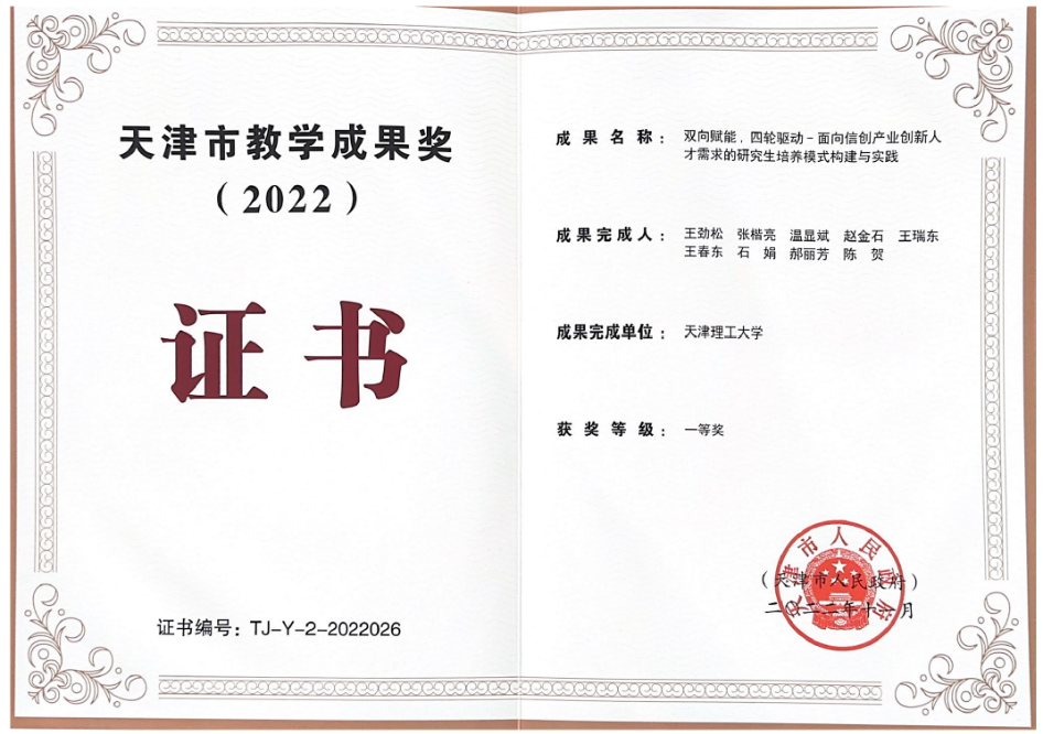 1.支持教学改革创新发展,凝练特色优质教学成果。广泛动员我校各研究生培养单位的研究生导师开展研究生教育教学改革项目,解决我校研究生教育面临的实际问题。自2022年起,已获批天津市高等学校研究生教育改革研究计划项目8项,其中重点项目2项、一般项目6项;立项校级研究生教育教学研究与改革项目92项。