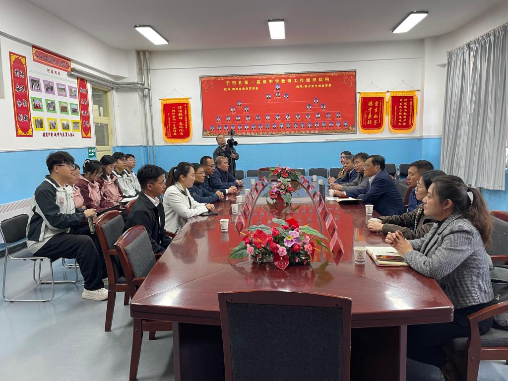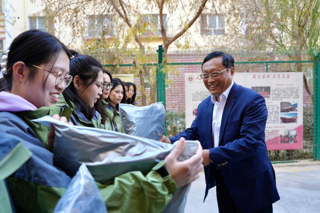 11月5日上午,刘东志一行来到新疆和田地区于田县第一高级中学走访调研,深入研究生支教团志愿者办公室、宿舍等地了解工作和生活情况,发放暖冬慰问品,并参观KY.COM民族团结教育协同育人基地、爱心书屋、明理广播站,观看师生共同演绎的合唱作品《同心结》和原创“天津援疆”快板作品《援疆颂》。