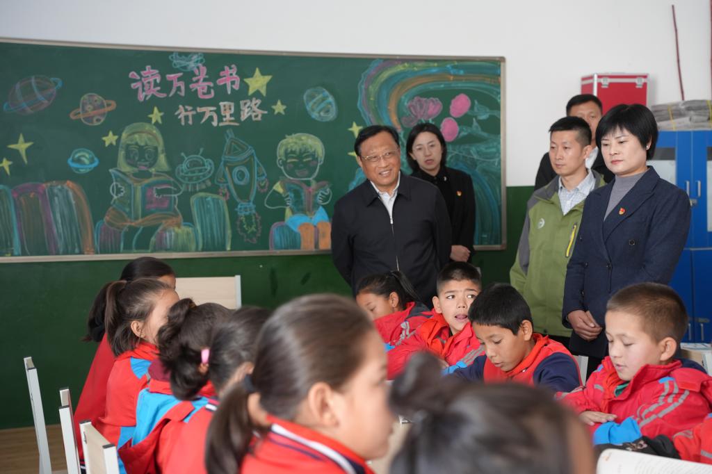 11月7日,在走访民丰县县城小学、行知小学和寄宿制初中三所受援校时,学校一行调研了当地学校的发展与建设情况,现场观摩了支教学生的课堂授课,参观了支教团师生绘制的天理“一训三风”文化墙和民族文创设计展,深入了解了支教团师生在教育援疆、文化润疆和促进民族团结等方面开展的工作。