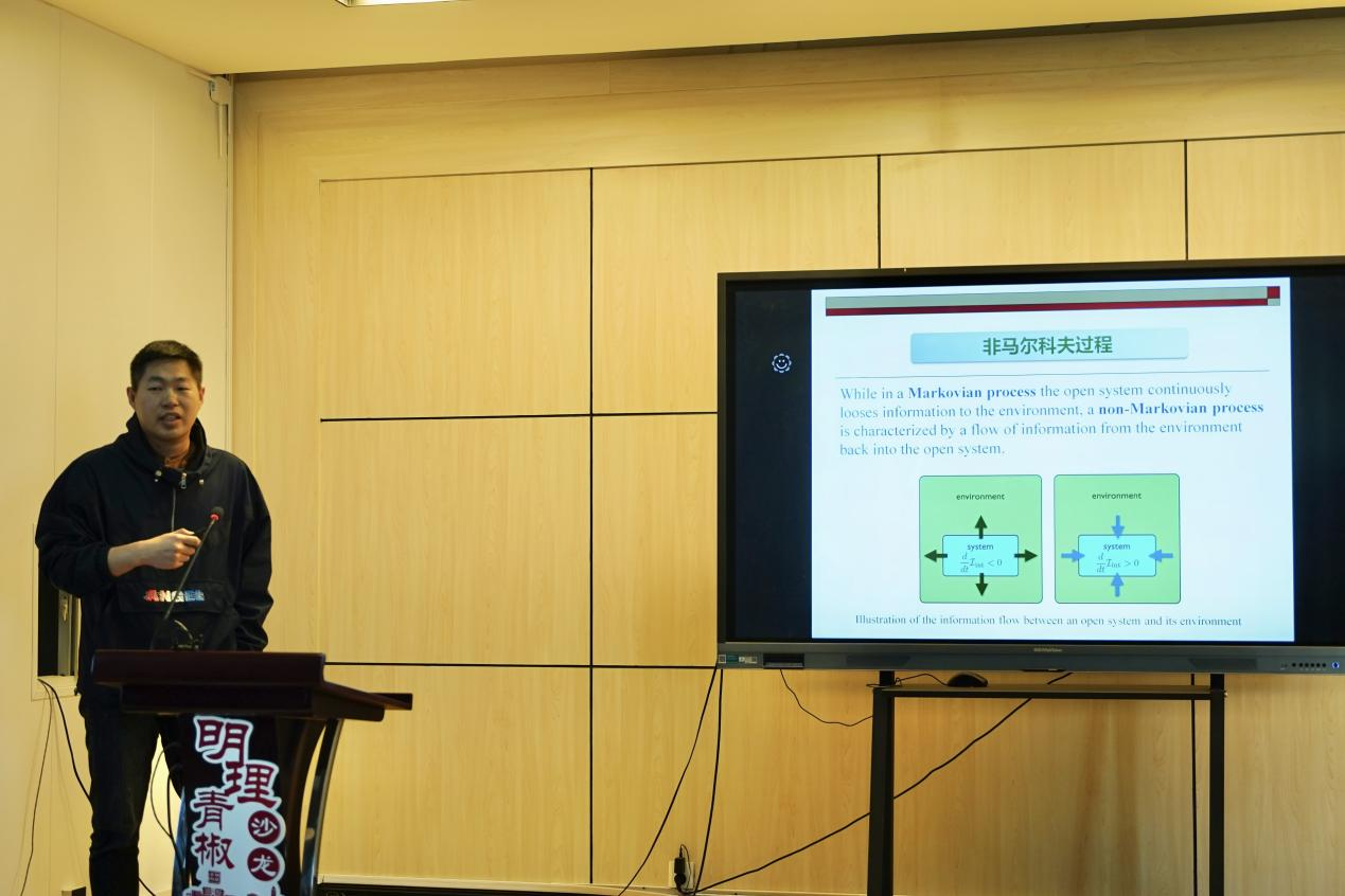 徐凯作题为“开放量子电池的充放电性能研究”的学术报告。他表示,量子电池作为一种接近原子大小的能量存储和转换设备,在能源领域具有潜在的应用价值。他围绕如何提高量子电池的充放电性能,介绍了开放量子系统、量子电池的定义、开放量子系统描述方法,以及如何将开放系统理论运用到量子电池研究中等内容,为实现性能优异的量子电池提供帮助。