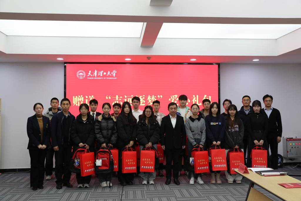 与会领导为就业帮扶导师代表颁发聘书,为参会学生代表赠送爱心大礼包。