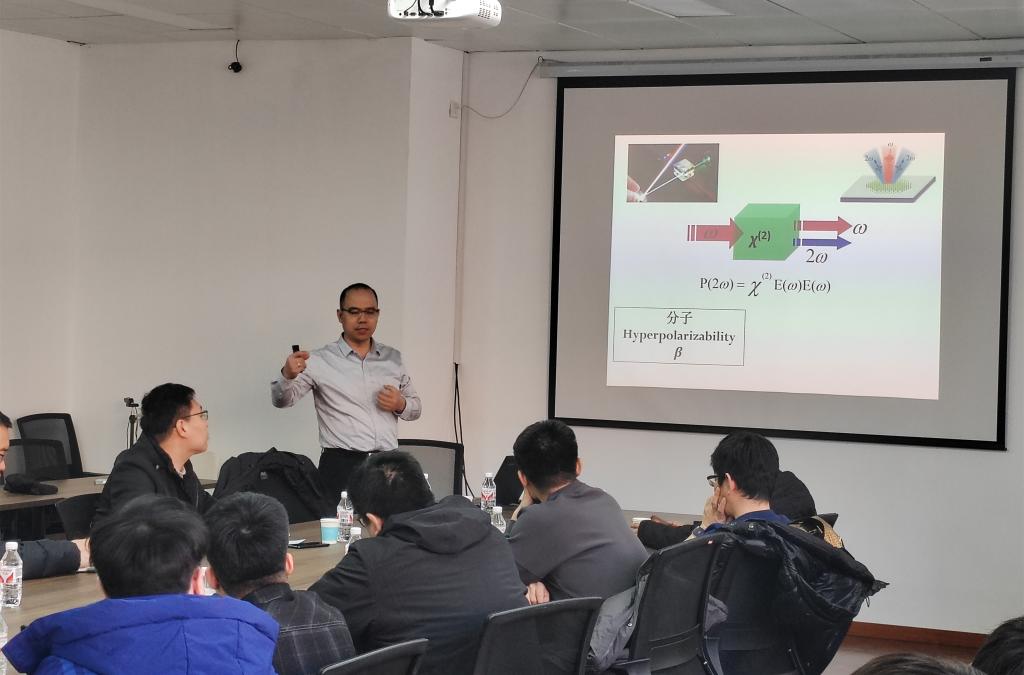 徐加良作了题为《手性非线性光学材料》的学术报告。他向参会师生详细介绍了线性与非线性光学现象的产生原理、手性有机—无机杂化钙钛矿材料(OIHPs)的特点与发展,以及当前该领域研究面临的困难与挑战;围绕手性OIHPs材料研究中的科学问题,详细阐述如何通过手性胺阳离子引入以及手性诱导策略,从分子层面实现对手性OIHPs材料结构及非线性光学性质的精确调控。他的研究不仅丰富了手性OIHPs材料的种类,还拓展了该类材料在非线性光学领域的应用。