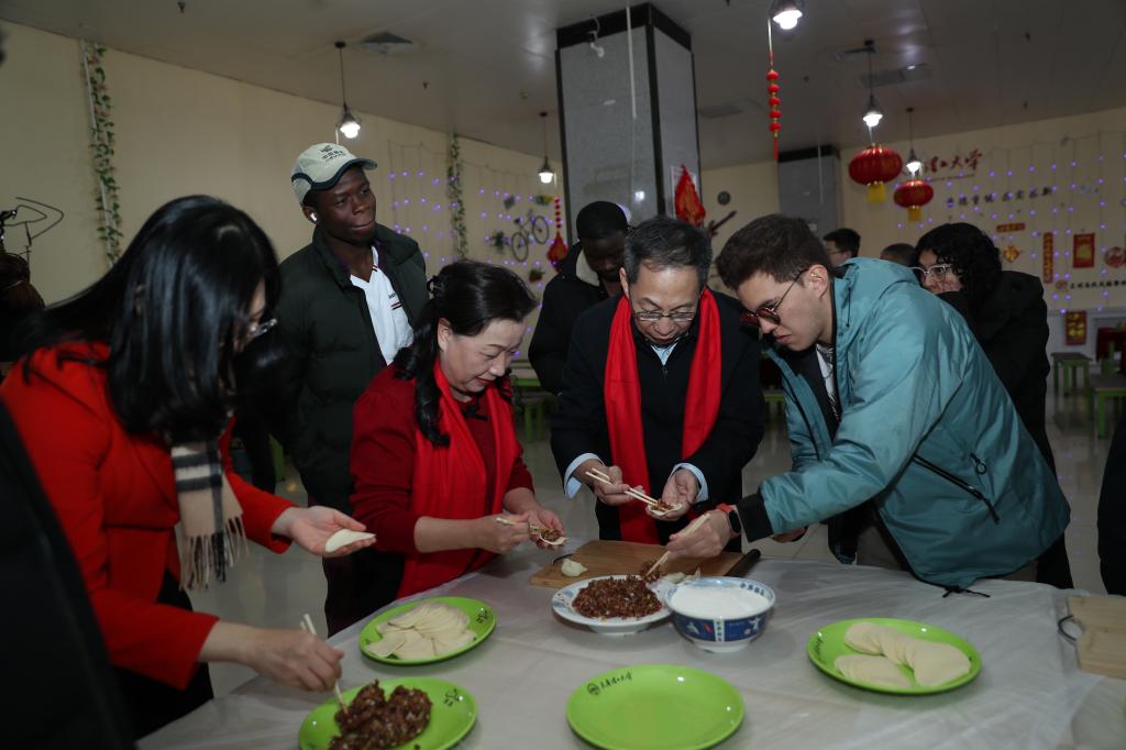 辞旧迎新,逢新一年。1月28日除夕中午,学校举办国际学生新春慰问活动。校领导刘东志、练继建、许瑞、王铁、冯骅、苏荣华出席,相关职能处室和学院负责同志参加,一起看望并慰问了春节期间留校的国际学生,向大家送去了学校的深切关怀和新春的诚挚祝福。