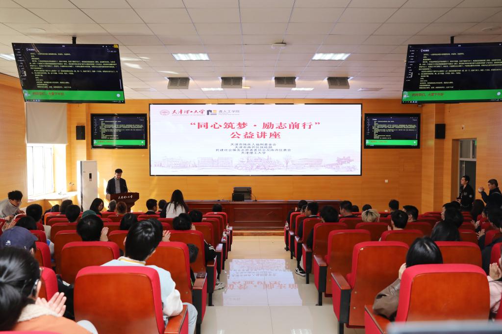 近日,中国残奥委员会副主席、全球残奥大使、三届残奥会跳高冠军侯斌走进学校,做客明理讲坛,以“人生不设限”为主题,为我校听障学子带来了一场震撼心灵的励志讲座。南开区委常委、统战部部长王立民,南开区政协副主席、民建南开区委主委李金胜,市残疾人福利基金会常务副理事长王怡,校党委副书记许瑞出席活动。民建南开会员和聋人工学院师生代表共同参加了此次活动。