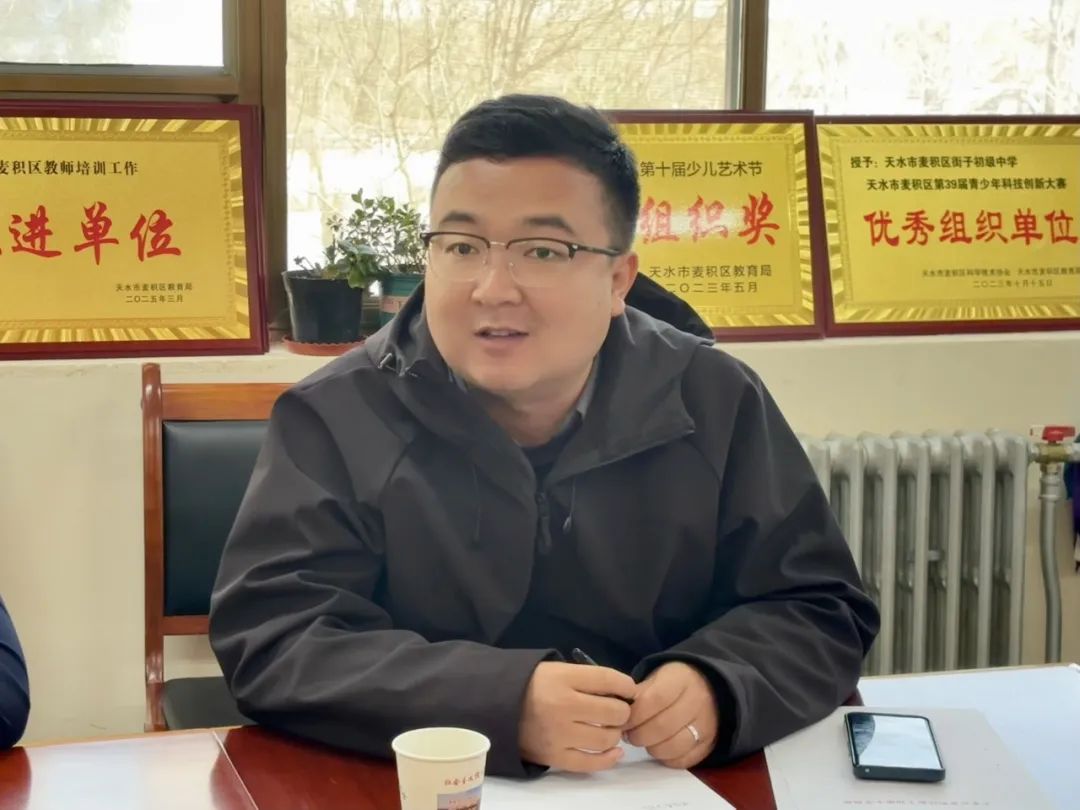麦积区团委副书记潘涛涛对我校一行的到来表示欢迎和感谢。他表示,研支团立足教育教学主责主业,以扎实的专业素养为乡村教育提质增效、赋能添彩,后续将持续做好研究生支教团的培养管理和服务保障工作。
