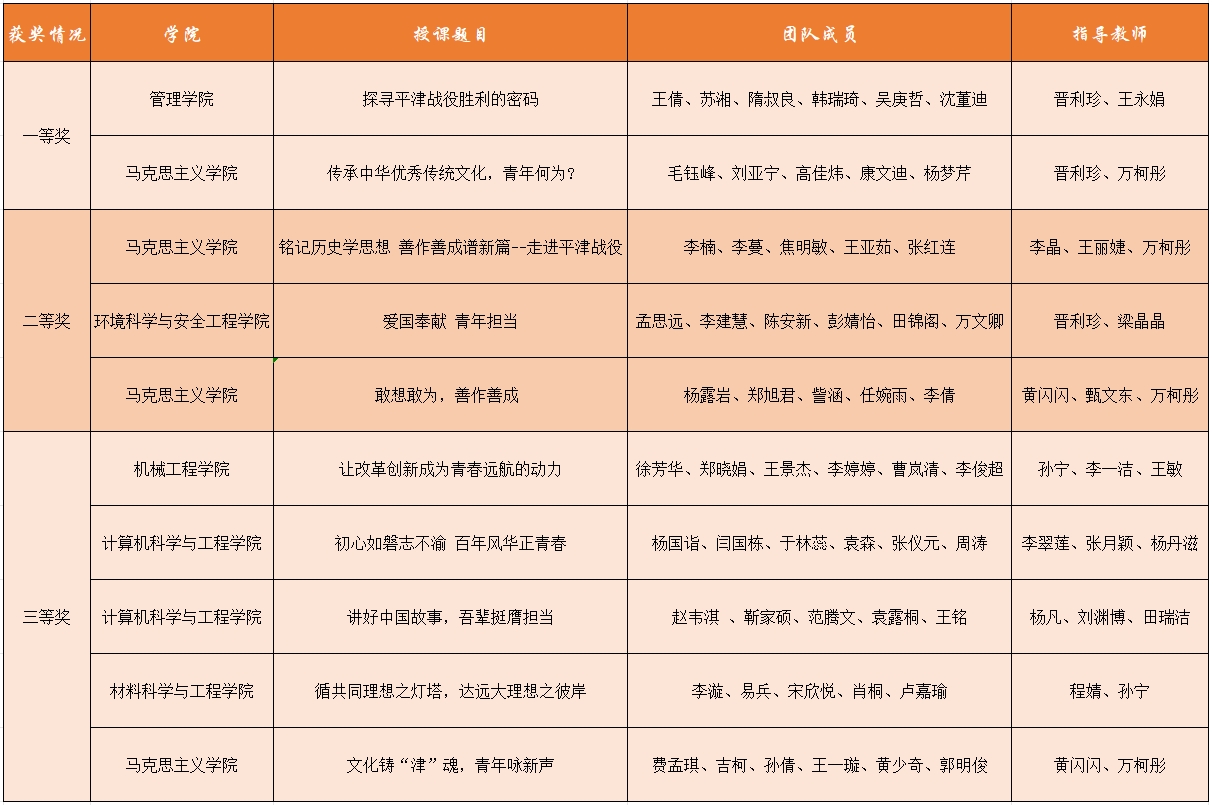 学校2024年思政公开课大赛获奖名单