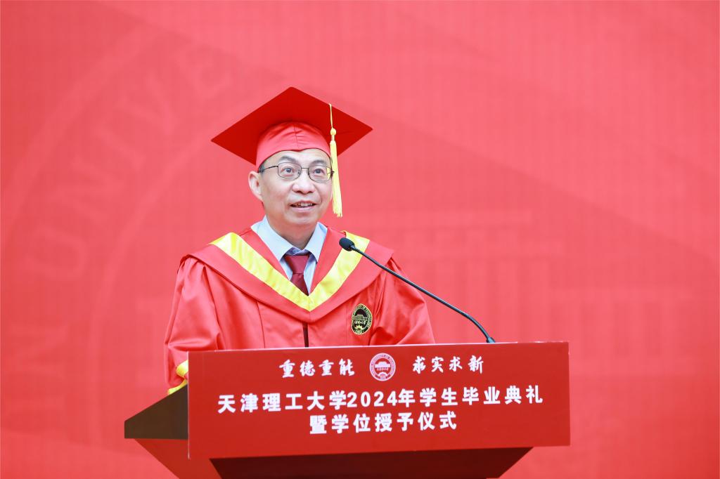 校长练继建在致辞中,代表全校师生员工向毕业生们表示最热烈的祝贺,向老师们和家长们致以崇高的敬意和衷心的感谢。他向全体毕业生提出三点希望:一要有“大胆天下去得”的闯劲。发扬“爱国奉献、求真务实、艰苦奋斗、开放包容、创新进取”的天理精神,让青春在实现中华民族伟大复兴的中国梦中绽放异彩;二要有“不破楼兰终不还”的韧劲。始终在困难和挫折面前保持清醒的头脑,既要受得了“狂风暴雨”,也要经得住“晴空万里”,在新的征程上展现新作为;三要有“直挂云帆济沧海”的干劲。继续秉承“重德重能 求实求新”的校训,让青春在守正创新中闪光,让人生在善作善成中建功。