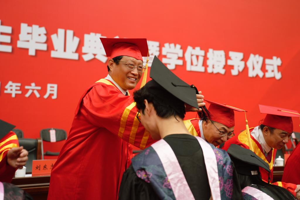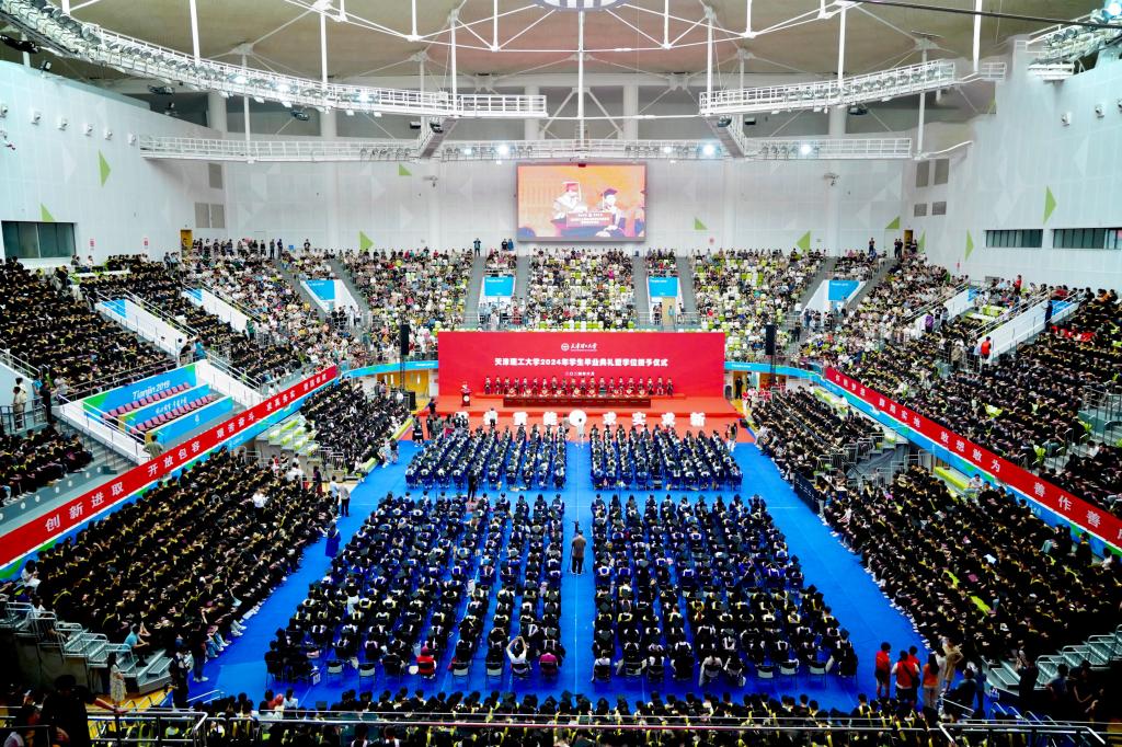 6月22日,学校2024年学生毕业典礼暨学位授予仪式在体育馆举行。校领导刘东志、练继建、陈胜勇、王铁、冯骅、苏荣华以及相关部门、各学院主要负责同志出席,并为获得学位的毕业生拨正流苏。毕业典礼由党委常委、副校长叶宁主持。