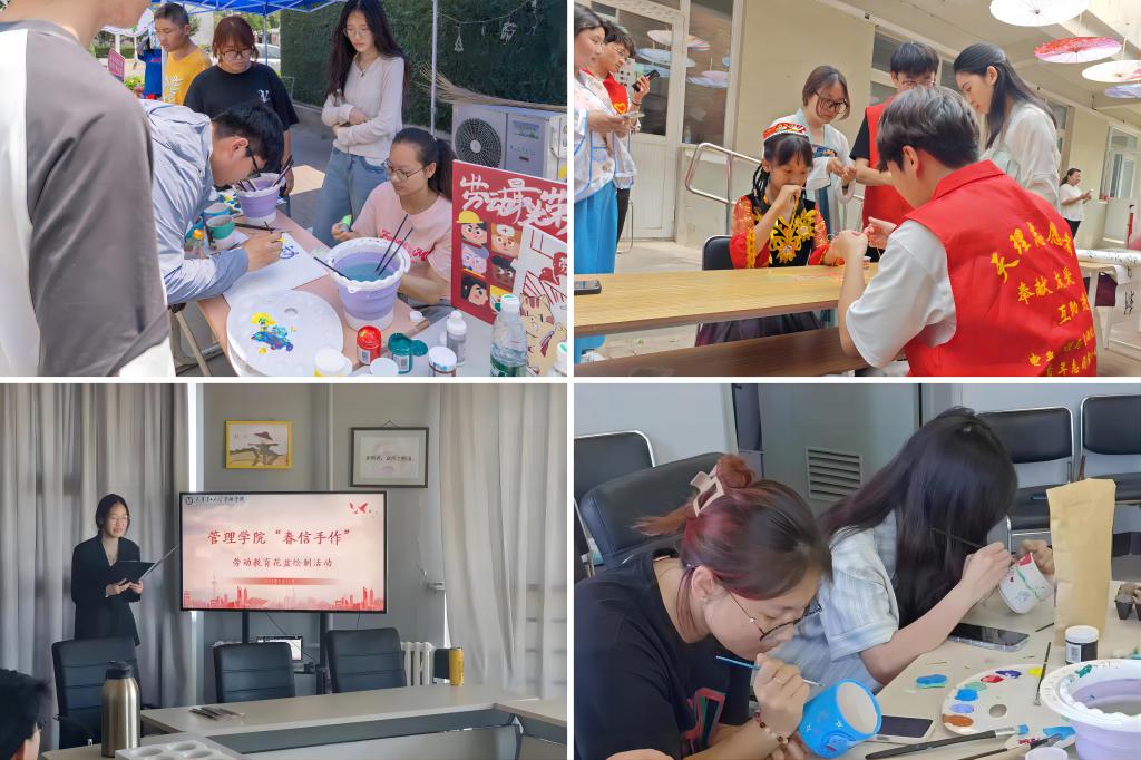 以劳育美,乐享幸福润心田。管理学院开展“春信手作”花盆绘制,将创意与绿色完美结合。化学化工学院征集“最美劳动者”摄影图片集,以影片记录劳动瞬间。语言文化学院开展“劳动让青春不留白”电子手抄报征集活动。环境科学与安全工程学院利用课余时间见“圾”行事,变废为宝,将捡拾的花叶,进行巧妙的拼接。计算机科学与工程学院组织“非遗手工与劳动精神”剪纸技艺体验活动,传承中华优秀传统文化。