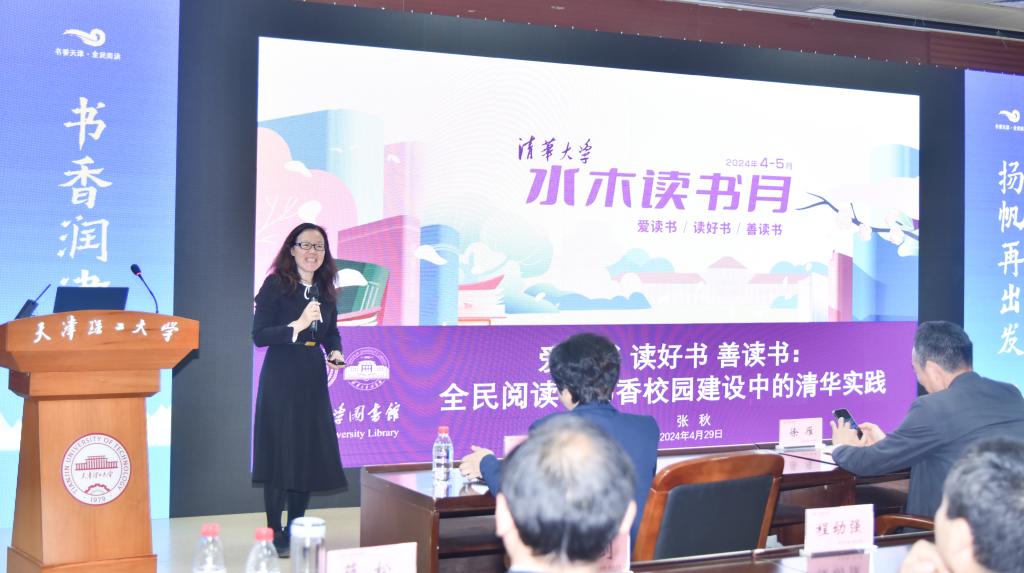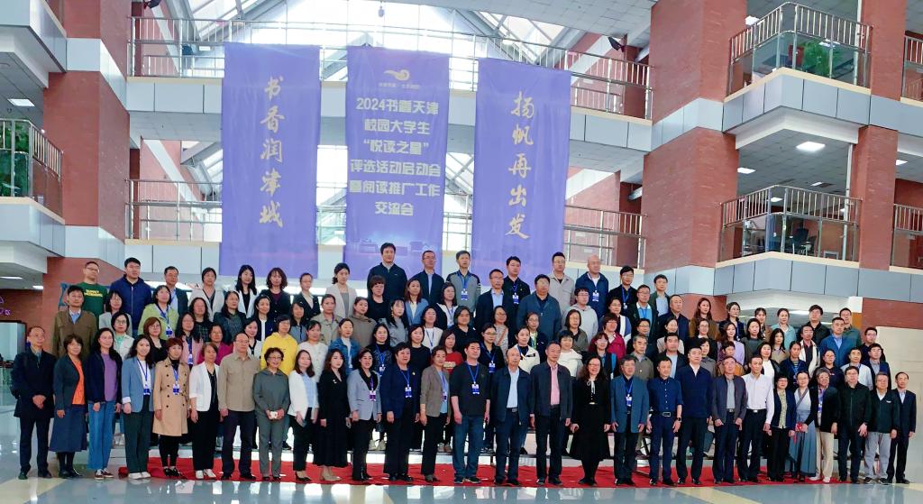 4月29日,我校举办“书香润津城 扬帆再出发”2024书香天津·校园大学生“悦读之星”评选活动启动会暨阅读推广工作交流会。天津市高等学校图书情报工作委员会常务副秘书长李广生、天津高等教育文献信息中心副主任谢春林,党委常委、副校长陈胜勇出席活动并致辞,天津市委宣传部印刷发行处副处长田彬出席,来自本市53所本科院校、军事院校及部分独立院校、高职院校的图书馆书记、馆长及教师代表参加会议。