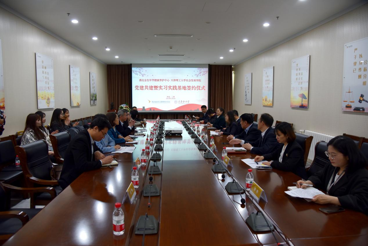日前,社会发展学院与河北三河燕达金色年华健康养护中心举行党建共建暨实习实践基地签约仪式。校党委副书记杜长有,燕达健康城副总裁李海燕出席活动,共建双方相关部门负责同志和师生代表参加了此次活动。