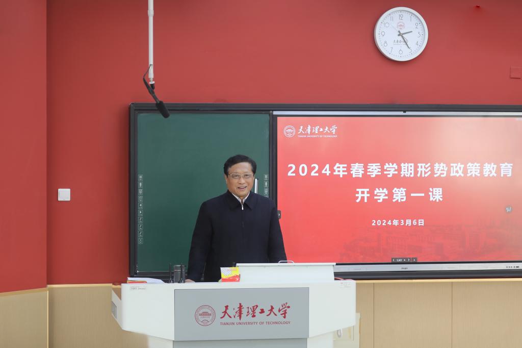 为深入学习贯彻习近平总书记视察天津重要讲话精神,贯彻落实习近平文化思想,引导广大天理学子坚定不移听党话、跟党走,坚持重德重能做人、求实求新干事,为强国建设、民族复兴伟业挺膺担当,3月6日校党委书记刘东志以“德能做人,实新干事,为强国建设、民族复兴伟业挺膺担当”为题,讲授了2024年春季学期形势政策教育开学第一课。校党委副书记张继东主持。