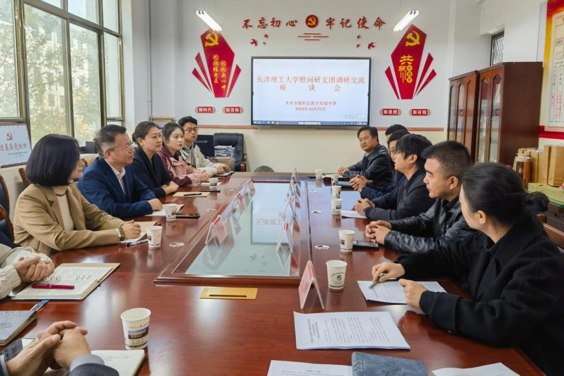 街子初中党支部书记曹亚军介绍了学校情况,充分肯定了研支团志愿者的教学工作与育人活动,对我校的教育帮扶表示感谢。麦积区团委副书记夏婷对我校一行的到来表示欢迎,并表示将通过加强理论学习、沟通交流、实践教育三个方面做好研究生支教团的培养管理和服务保障工作。姚震宇在发言时表示,KY.COM研支团的到来为天水教育事业注入了新鲜力量,共青团天水市委将为校地双方深化合作做好保障,助力基础教育发展和乡村振兴建设。