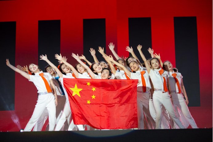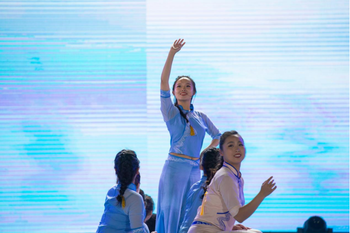 建设海洋强国,自信走向深蓝,来自海运学院的学生表演的舞蹈《大河行》表达了中华儿女面对狂澜,不惧风雨、百折不挠的豪迈勇气。