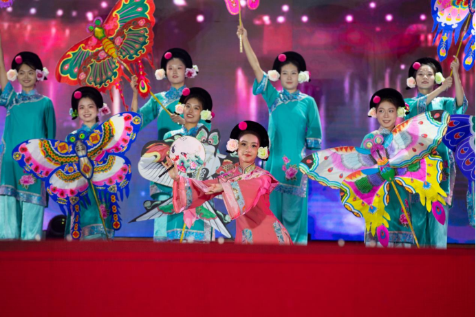 晚会在歌舞《青春天理》的真情邀约中拉开帷幕,《青春天理》是为迎接2023级新生原创的一首新歌,在晚会首次亮相发布,曲风青春活泼、朝气蓬勃,充分展现了青春天理热情洋溢、青春昂扬地迎接8000余名新天理人的到来。