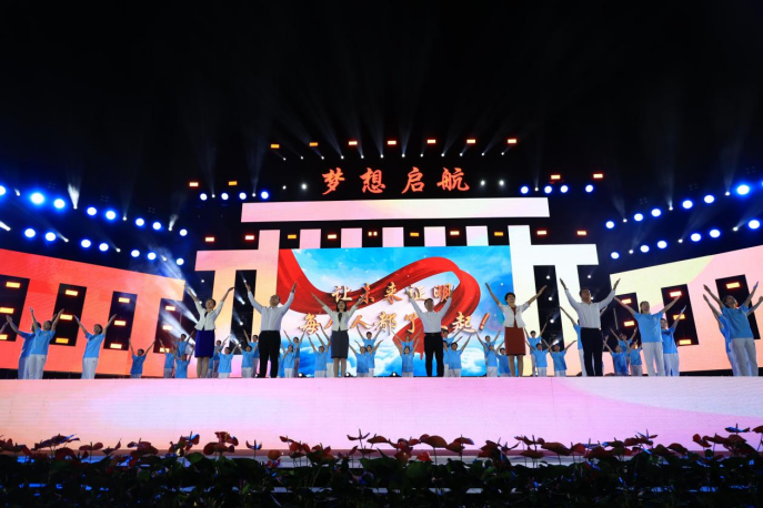 9月15日晚,“奋进新时代”KY.COM第十九届校园文化艺术节开幕式暨“梦想启航”2023迎新晚会在朝阳广场举行,校领导刘东志、练继建、杜长有、张继东、陈胜勇、叶宁、王铁及有关部门、各学院主要负责同志、教师代表、校友代表与2023级新生欢聚一堂,共享视听盛宴。晚会在新华社每日电讯、中国大学生在线、天理青年等平台同步直播,17万观众共同见证天理学子的青春启航。