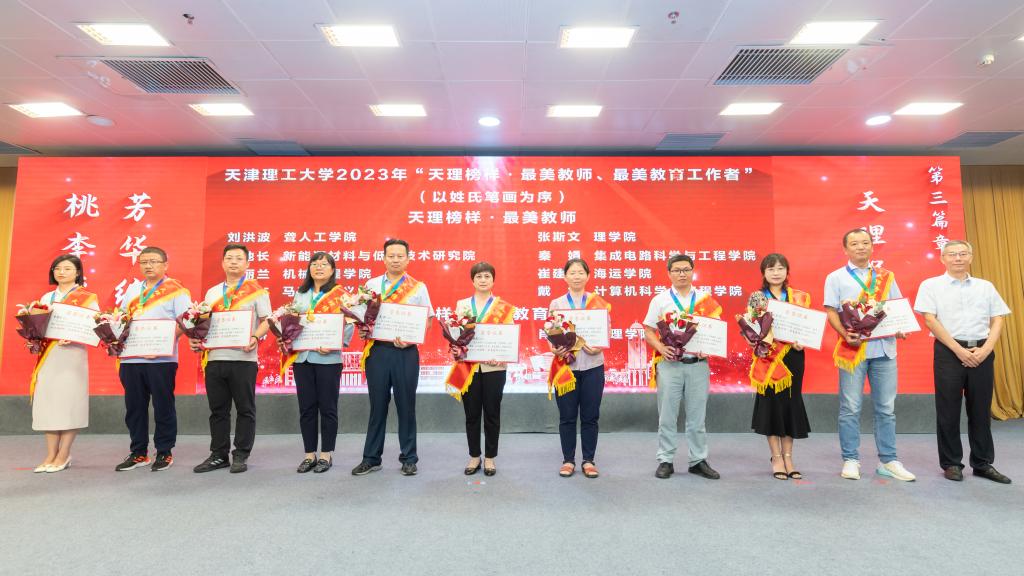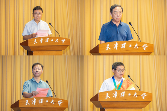 国家海外高层次人才引进计划青年人才、材料科学与工程学院骆昆教授,天津市教学名师、机械工程学院穆浩志教授,中国书协会员、天津书协理事、聋人工学院王智忠教授,教育部青年长江学者、新能源材料与低碳技术研究院钟地长教授分别作为新聘教师代表、退休教师代表、从教30年教职工代表和获奖教师代表发言,深情表达躬耕教坛、强国有我的志向抱负,生动展现我校教师敬业立学、崇德尚美的精神面貌。骆昆教授表示将继承和弘扬学校校训精神和优良传统,持续提升专业素质能力,以科研强校、人才强校战略为引领,潜心教学科研,做学生成长成才的引路人、做教育改革和学校发展的主动参与者,为学科建设和专业发展贡献力量。穆浩志教授回顾了自己36载教学科研生涯,表达了对教育事业和母校的满腔热爱之情,嘱托新聘教师要做好“历史接棒人”,筑牢教书育人、立德铸魂的基础,担当起学校高质量发展和培养时代新人的使命。王智忠教授以“激动”“感恩”“快乐”为关键词表达了从教30年的真情实感,感谢学校党委一直以来对广大教职工的关心帮助,让天理人始终拥有归属感、获得感和荣誉感,今后将继续深扎工作岗位,为学校发展作出贡献。钟地长教授紧密结合自己的科研工作表达对学校发展建设的关切和对教育事业的热爱之情,表示将珍惜荣誉,再接再厉,充分发挥先进典型的示范引领作用,为学科建设和专业发展作出新的更大贡献。