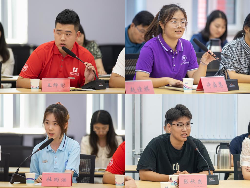校领导认真倾听每一位新生的发言,并围绕如何适应大学生活、做好学业规划、共促学校发展等话题与同学们进行互动交流。