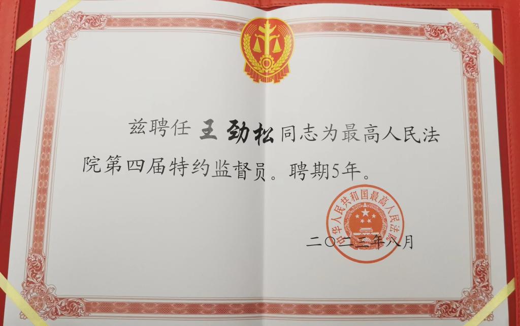 8月25日,最高人民法院在国家法官学院举行第四届特约监督员聘任活动,最高人民法院党组书记、院长张军为新一届特约监督员颁发聘书并讲话。第十四届全国人大代表、九三学社天津市委会副主委、我校研究生院院长、学科建设办公室主任、计算机科学与工程学院教授、博士生导师王劲松受聘为最高人民法院第四届特约监督员。