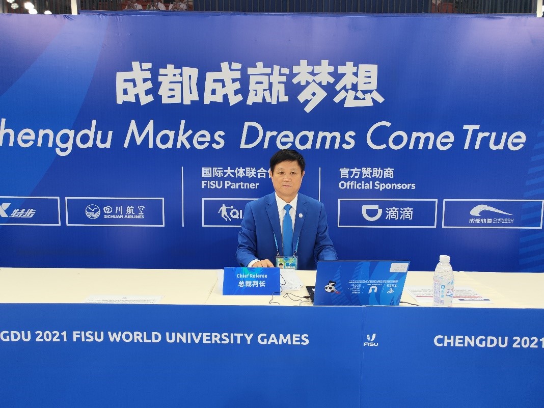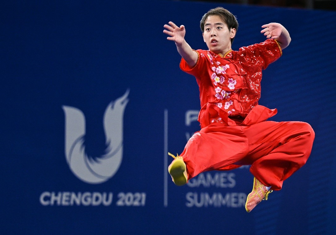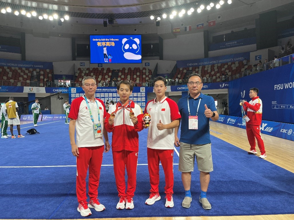 我校共派出3名师生参加成都大运会。经过层层选拔,管理学院学生金哲典入选中国代表团。作为中国大学生体育协会民族传统体育分会主席单位,中国武术队由校党委副书记杜长有担任领队,体育教学部教师唐玄戈担任武术套路队教练。