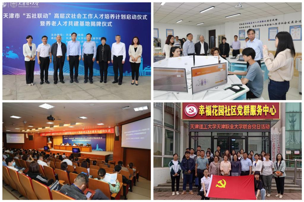 学院党委牢记为党育人、为国育才使命,坚持“四个面向”。持续推进党建引领就业,做好毕业生就业服务工作,扎实开展访企拓岗。与天津职业大学共赴宁河区幸福花园社区党群服务中心开展“职引未来,直面社区工作”主题党日活动,进一步带领学生融入社区,实地了解行业发展前景;联合市社会工作协会举办2023年社会工作服务机构专项校园招聘会;与市民政局共同举办“五社联动”高层次社会工作人才培养计划启动仪式暨养老人才共建基地揭牌仪式,邀请民政部政策研究中心主任王杰秀作了题为“养老服务工作的十个重点问题”的报告;学院以我市“五社联动”高层次社会工作人才培养计划为契机,聚焦以中国式现代化全面推进中华民族伟大复兴的目标任务和我市经济社会发展重大需求,发挥社会工作学科、科研和人才优势,着力培养民政领域高层次社会工作人才和养老人才,推动养老服务行业的科技创新,打造养老工作领域产教融合新范式,为我市养老事业和产业发展作出重要贡献。