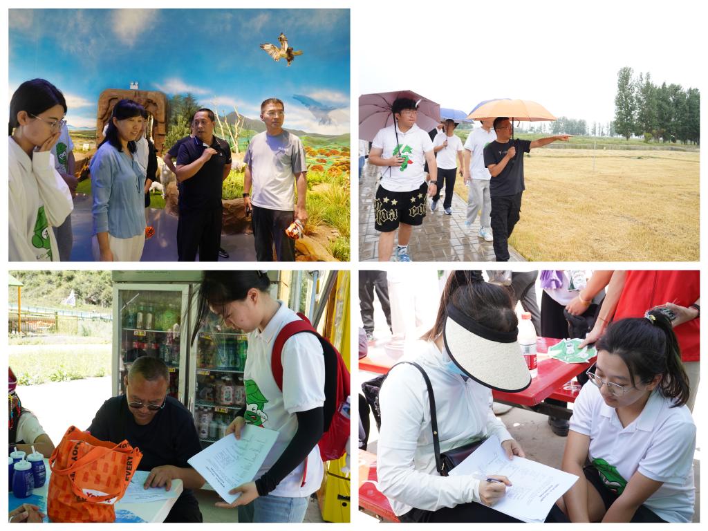 实践团来到内蒙古自治区辉腾锡勒草原,调研草原生态保护修复相关情况。在交流走访中,实践团一行了解到草原的植被覆盖率高(可达80%~95%),草原生物多样性高,其中十余种草种被确认为珍稀草种,具有生态保护修复的重大价值。实践团还进一步地调研了解了当地生态保护修复相关措施,并有针对性地开展相关问卷调查,了解当地居民、外来游客对草原生态环境保护的相关认识。随后,实践团前往中国农业科学院草原研究所,走进国家多年生饲草种质资源圃,领略“牧草之王”羊草的风采,参观学习了内蒙古自治区多样的生态系统、先进的草地检测防控系统,以及展馆内宝贵的生物标本。实践团成员深刻认识到实现种业科技自立自强、种源自主可控的重要性,只有将种子资源牢牢握在自己手里,才能实现草业高质量发展。