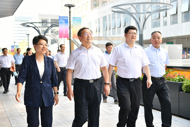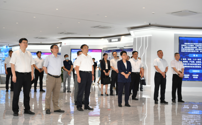 中心组一行首先来到南开区天开高教科创园“核心区”开展调研,深入实地调研学习市委、市政府“十项行动”和高水平建设天开高教科创园战略部署。中心组成员参观了天开综合服务中心,详细了解自助服务、智慧微厅、金融超市等一站式综合服务,调研了解天开园规划、功能定位、政策扶持、成果孵化、资源共享、学校推荐项目情况等。