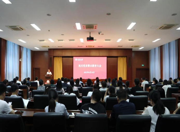 学校机关于日前召开党员警示教育大会。校党委副书记、机关党委书记杜长有出席并讲话,机关年轻党员干部120余人参加大会。