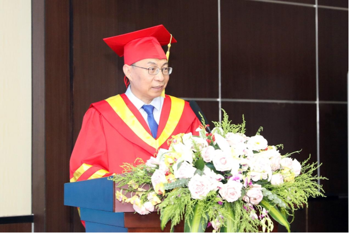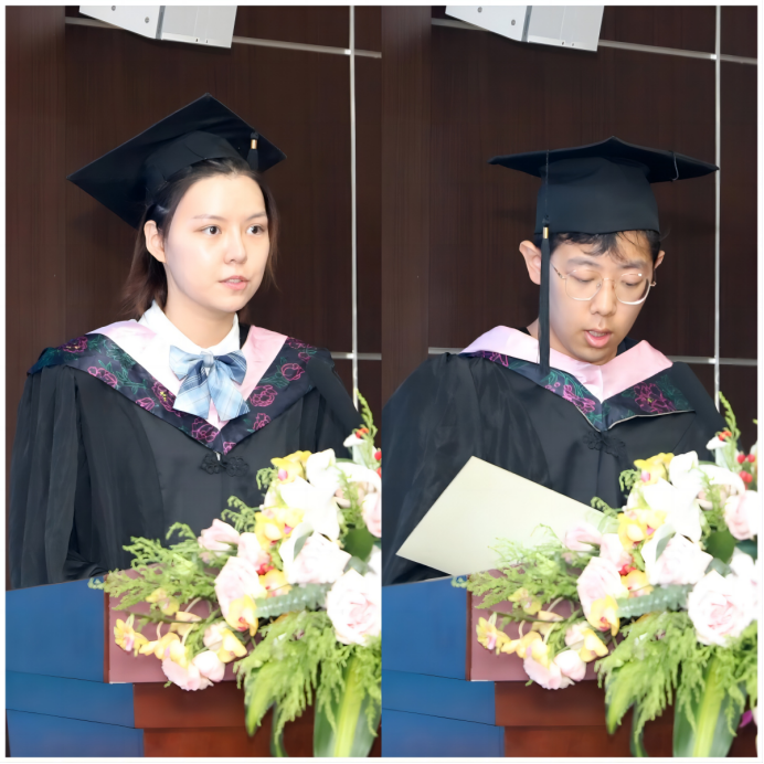 毕业生代表分别发表毕业感言,感谢学校和老师们的培养与辛勤付出,表示一定会带着学校师长的期待与嘱托,用好专业所学,为国家发展、社会进步贡献自己的智慧与力量。