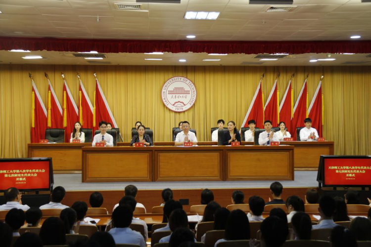 学校第八次学生代表大会、第七次研究生代表大会于日前在图书馆报告厅召开。党委常委、副校长张继东,市学联执行主席贺峰,天津大学学生会执行主席罗畅,学校相关部门负责同志,各学院团委书记出席开幕式。来自各基层单位的300名本科生、研究生代表参加大会。