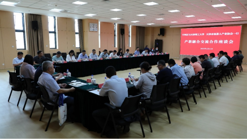 为扎实推动主题教育走深走实,服务地方经济社会发展,推动产学研合作精准对接,5月31日,学校与宁河区委、市机器人产业协会举办产教融合交流合作座谈会。宁河区委常委、组织部部长原战船,副区长陈良文,党委常委、副校长叶宁出席。
