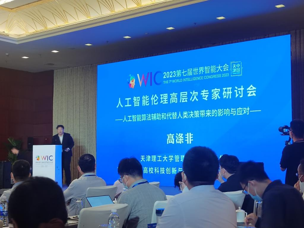 5月18日,第七届世界智能大会人工智能伦理高层次专家研讨会在津举办。中国科协党组副书记、专职副主席、书记处书记束为,市人大常委会副主任、中国科学院天津工业生物技术研究所所长马延和出席并致辞。我校管理学院本科生高涤非作为首届市高校科技创新与科技伦理辩论赛决赛选手受邀参会,并作题为“人工智能算法辅助和代替人类决策带来的影响与应对”主题报告。