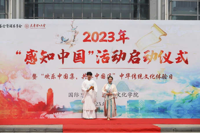 在启动仪式上,T台秀、合唱《大中国》、京韵大鼓《华容道》为大家带来文化盛宴。我校中外学生代表纷纷展示各自国家、民族的服饰、饮食等特色文化。
