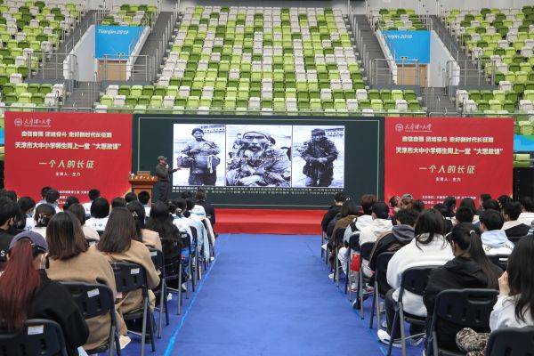 3月18日,在习近平总书记发表学校思想政治理论课教师座谈会重要讲话4周年之际,由市委教育工委、市教委举办,天津市大中小学师生同上一堂“大思政课”——“自信自强、团结奋斗,走好新时代长征路”,在我校体育馆举行。市委教育工委专职副书记孙志良、校党委书记刘东志出席,活动由党委常委、副校长张继东主持。