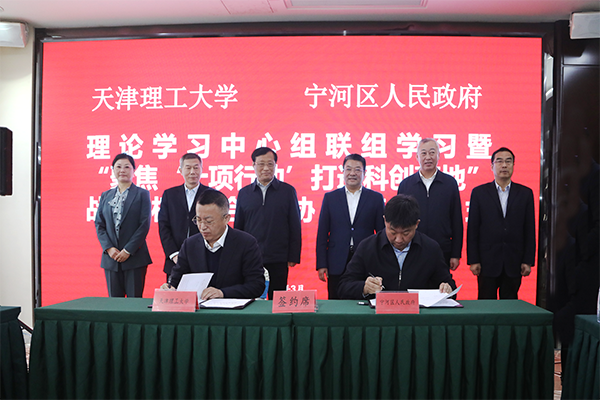 为深入贯彻落实党的二十大精神和市第十二次党代会精神,推进中国式现代化在津沽大地生动实践,围绕“四高”现代化大都市目标任务,聚焦市委“十项行动”决策部署,3月14日,校党委与宁河区委举行理论学习中心组联组学习暨“聚焦‘十项行动’打造科创高地”战略合作框架协议签约仪式。宁河区委副书记、区长惠冰,校党委书记刘东志出席。双方理论学习中心组成员、企业代表、相关部门负责同志共同参加了学习和签约仪式。