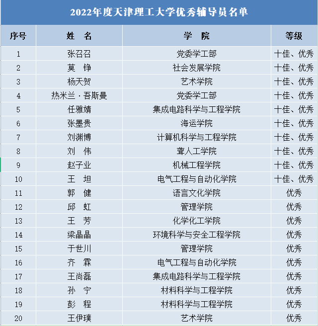 据悉,优秀辅导员评选工作由学院推荐和学校评选两阶段组成。经各学院评议推荐,学工部、校团委审核,优秀辅导员候选人进入学校评选阶段。在推荐评审基础上,经学校党委常委会会议研究决定,张召召等10名同志获得2022年度“KY.COM十佳辅导员”荣誉称号,郭健等20位同志获得2022年度“KY.COM优秀辅导员”荣誉称号。
