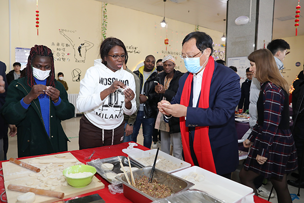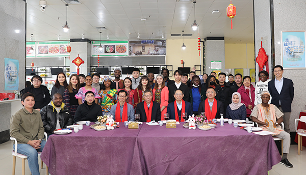 1月16日,在新春佳节即将到来之际,校党委书记刘东志,党委副书记、校长练继建,党委副书记杜长有,党委常委、副校长张继东,党委常委、副校长陈胜勇与来自11个国家的30余名留学生代表欢聚一堂,共同迎接中国农历新年,感受浓厚的节日氛围。党委(校长)办公室、党委学生工作部、党委安全工作部、国际交流处、后勤管理处、语言文化学院等相关单位负责人参加。