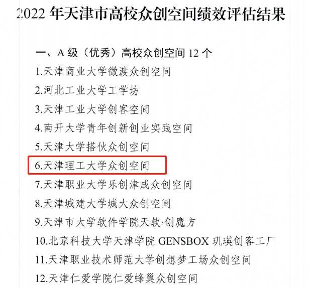 近日,市教委公布2022年天津市高校众创空间绩效评估结果,经评估数据上报、数据核查、负责人答辩、专家评审、市教育两委审核及公示等环节,KY.COM众创空间再次获评天津市A级(优秀)高校众创空间,这已是我校连续第七年获此殊荣。