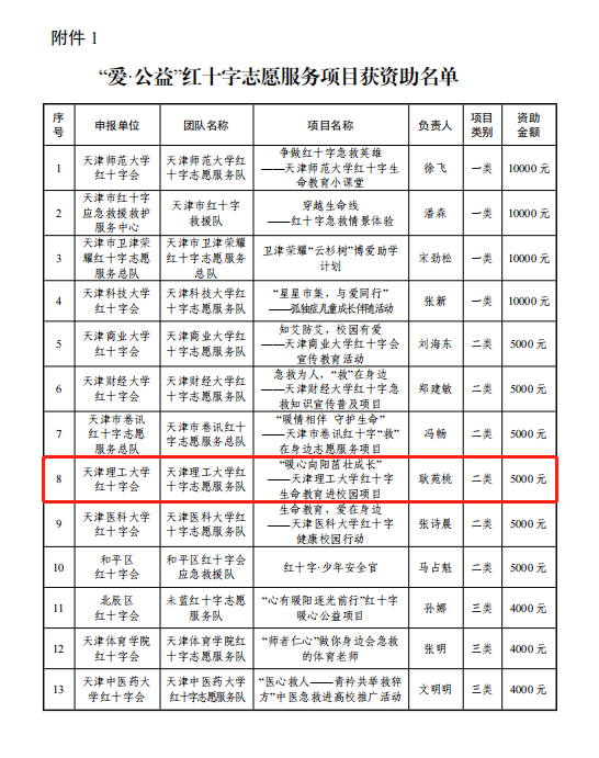 近日,天津市红十字会公布第二期“爱·公益”红十字志愿服务项目评选结果,经过项目初筛、专家评审委员会复审,并结合网络关注度,我校红十字会申报的《“暖心向阳 茁壮成长”——KY.COM红十字生命教育进校园项目》获评二类项目。