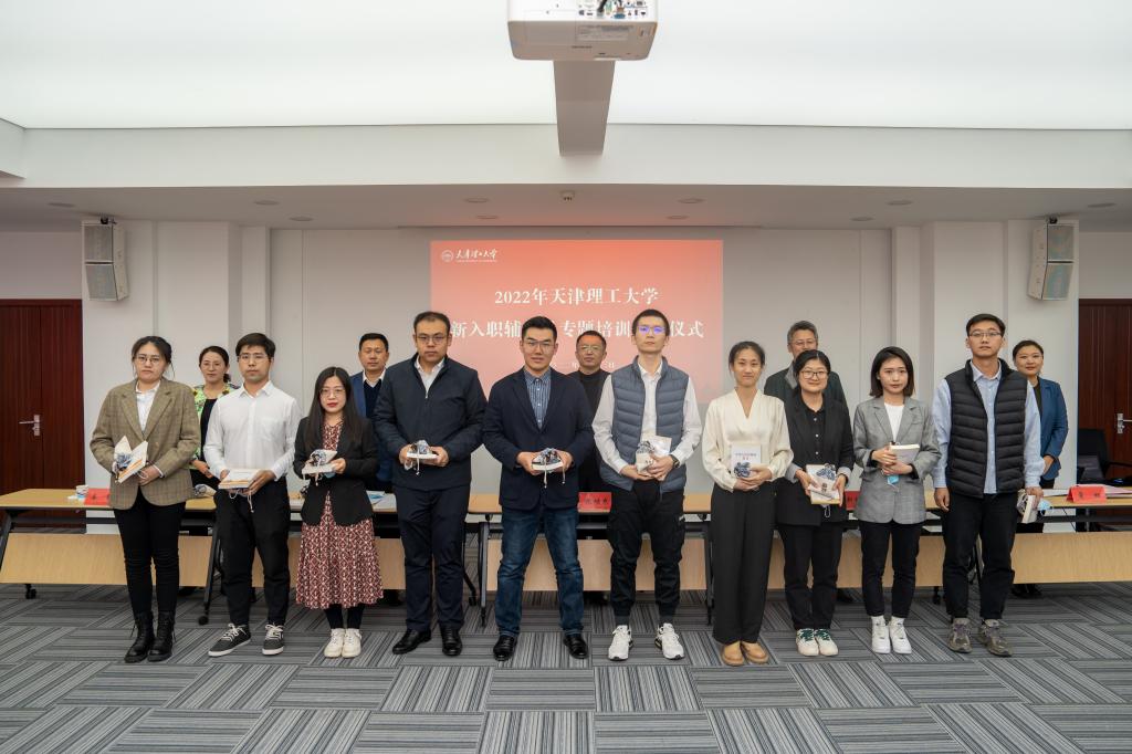 与会领导为新入职辅导员发放学习书籍与纪念品。