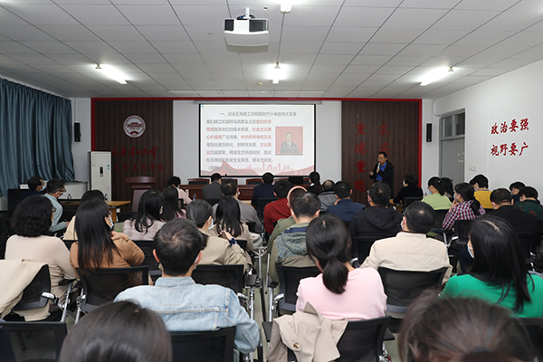 马克思主义学院思政课教师热切关注党的二十大胜利召开,及时收听收看开幕会,认真学习党的最新理论成果,第一时间通过思政课主渠道将党的二十大报告内容传递给学生,用习近平新时代中国特色社会主义思想铸魂育人。