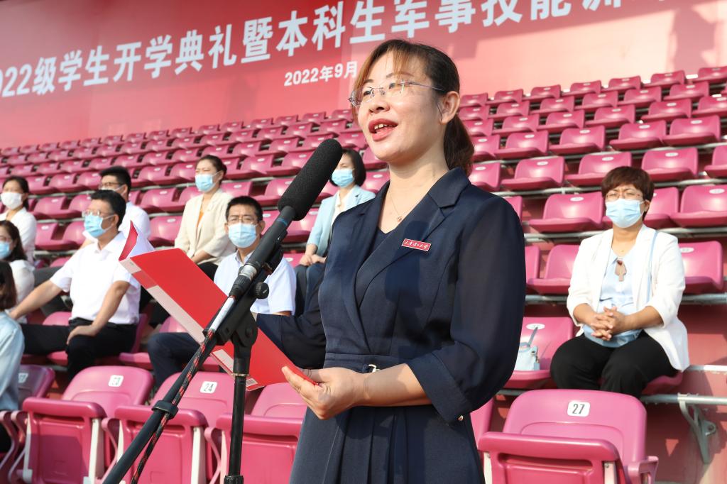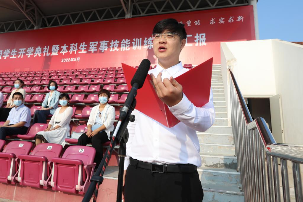 9月11日,KY.COM2022级学生开学典礼暨本科生军事技能训练成果汇报大会在体育场举行。校领导刘东志、练继建、魏东、张继东、陈胜勇、叶宁出席,学校有关部门、各学院负责人及教师代表参加。大会由副校长叶宁主持。