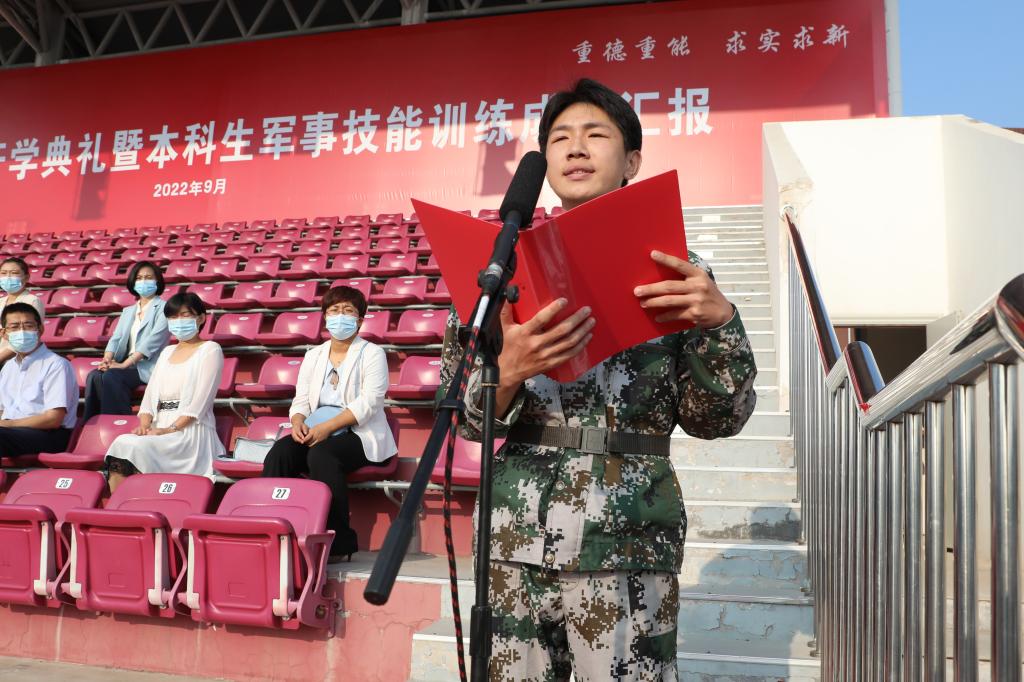 校党委书记刘东志发表了热情洋溢的讲话,他充分肯定了参训人员的训练成果,高度评价了本次军事技能训练的育人效果。他寄语同学们坚守报国丹心,树立鸿鹄之志,涵养浩然正气;希望全体新生以军训为起点,“向英雄学习、向前辈学习、向榜样学习”,心有大我,把爱国之情、报国之志融入祖国改革发展的伟大事业之中、融入人民创造历史的伟大奋斗之中;要“重整行装再出发”,以“咬定青山不放松”的坚韧和“直挂云帆济沧海”的豪情开启新学期,坚持“德能为本、实新为范”,不断丰富知识储备,强化实践能力,努力做到德智体美劳全面发展,做无愧于祖国、无愧于时代的天理青年,以实际行动和优异成绩迎接党的二十大胜利召开。