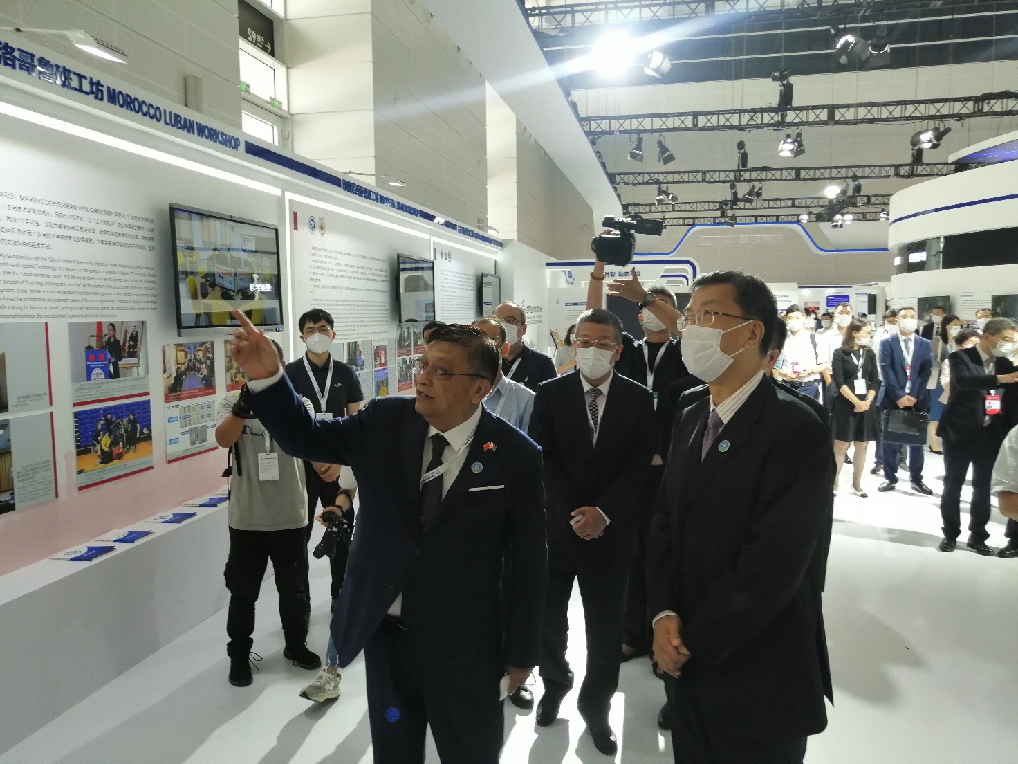 中外嘉宾通过KY.COM科特迪瓦鲁班工坊展位了解到工坊培养科特迪瓦乃至非洲国家技术创新型工程师的办学理念和教学模式以及学校“真、实、亲、诚”的对外交流原则。观展嘉宾纷纷表示,我校科特迪瓦鲁班工坊特色鲜明、定位明确,设备配置符合非洲国家的实际发展需要,切实增进了中科两国民心相通。