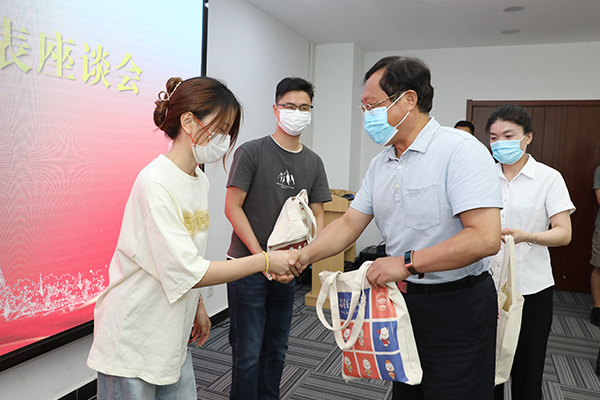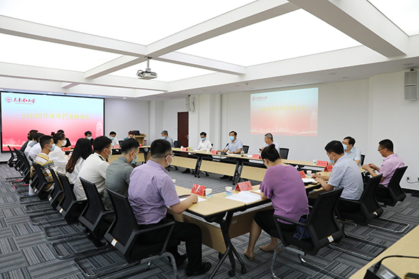 6月27日,2022届毕业生代表座谈会在办公楼216会议室举行,校领导刘东志、杜长有、陈胜勇与10余名毕业生代表亲切座谈。党委办公室、党委学工部、教务处、研究生院、后勤管理处、团委、图书馆、校友工作办公室等部门主要负责同志出席座谈会。会议由校党委副书记杜长有主持。