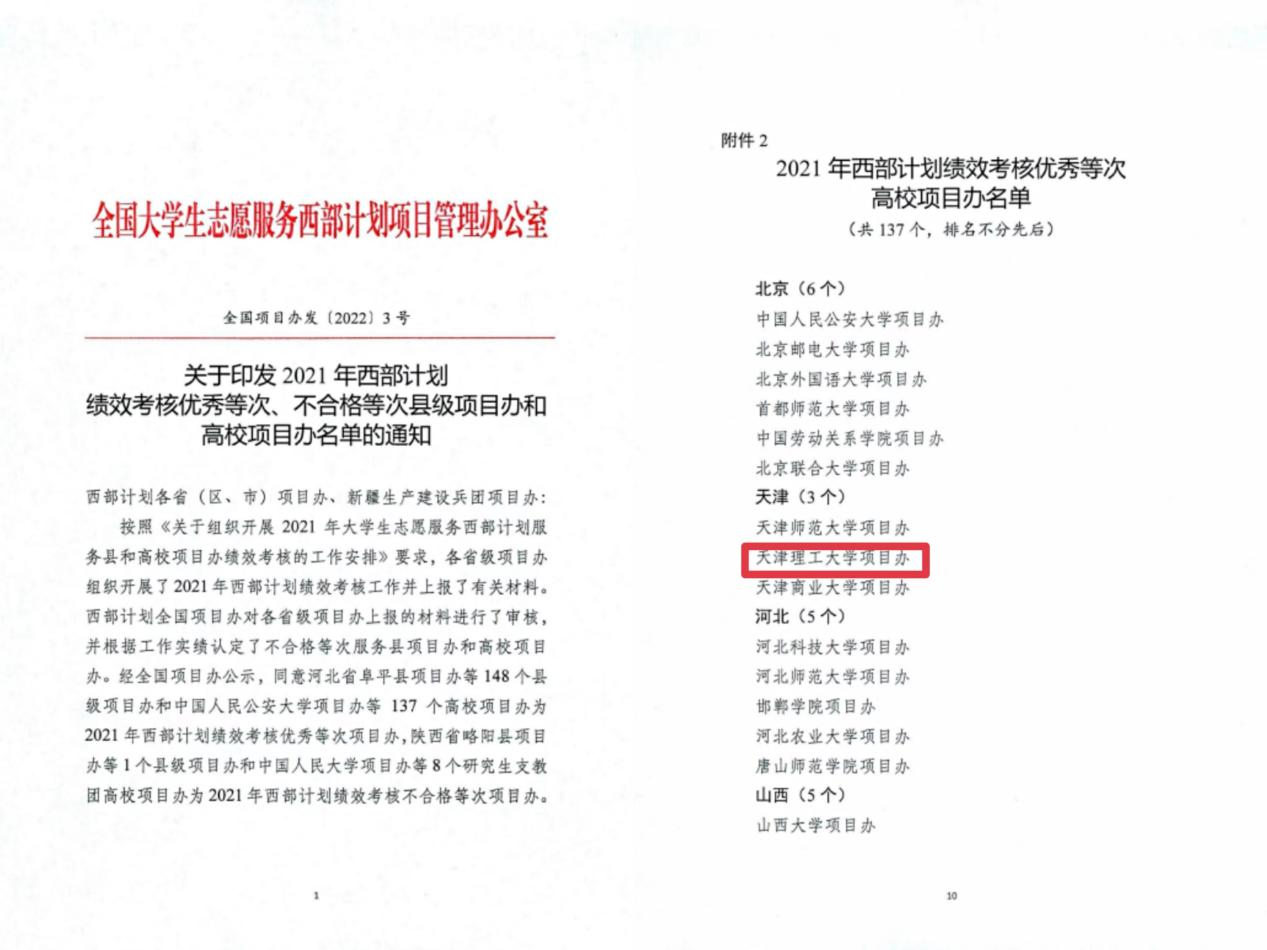 近日,全国大学生志愿服务西部计划项目管理办公室发布《关于印发2021年西部计划绩效考核优秀等次、不合格等次县级项目办和高校项目办名单的通知》,学校再次获批“2021年全国西部计划绩效考核优秀等次高校项目办”。