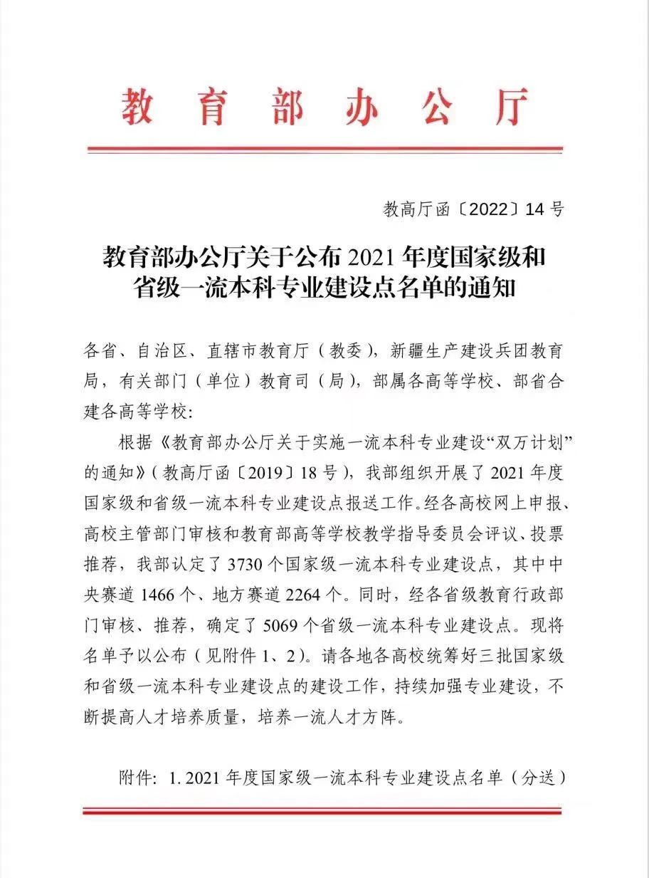 日前,教育部办公厅发布《教育部办公厅关于公布2021年度国家级和省级一流本科专业建设点名单的通知》(教高厅函〔2022〕14号),我校动画、市场营销、环境工程等3个专业入选国家级一流本科专业建设点;社会学、日语、功能材料、新能源材料与器件、能源与动力工程、光电信息科学与工程、集成电路设计与集成系统、网络工程、轮机工程、药学、物流管理、环境设计等12个专业入选省级一流本科专业建设点。截至目前,学校国家级和省级一流本科专业建设点达到41个,占招生专业总数的66.13%。