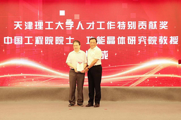 校党委书记刘东志为吴以成院士颁发人才工作特别贡献奖,感谢他多年来在人才工作方面作出的卓越贡献。