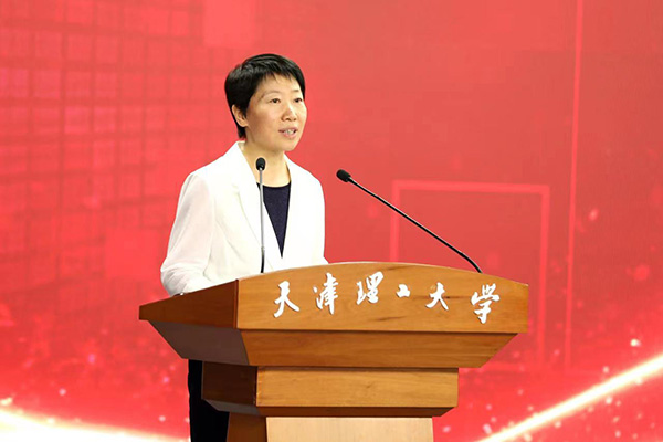 市委教育工委副书记、一级巡视员张弢肯定了学校在人才队伍建设、人才工作推进等方面的举措和成绩。她解读了“十四五”时期市教委立足新发展阶段,服务构建新发展格局,紧密对接国家重大战略性新兴产业发展需求,围绕天津市十大产业人才创新创业联盟建设部署,持续增强人才科技创新能力和育人实力,建设人才中心和创新高地的主要措施。